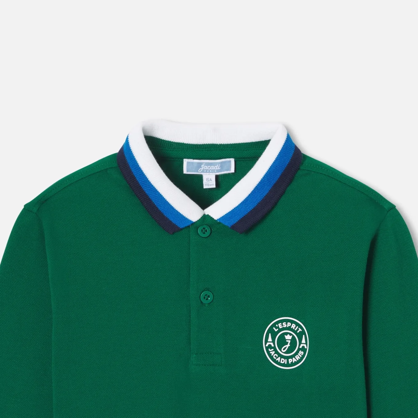 – Col et bas de manches en bord-côte tricolore