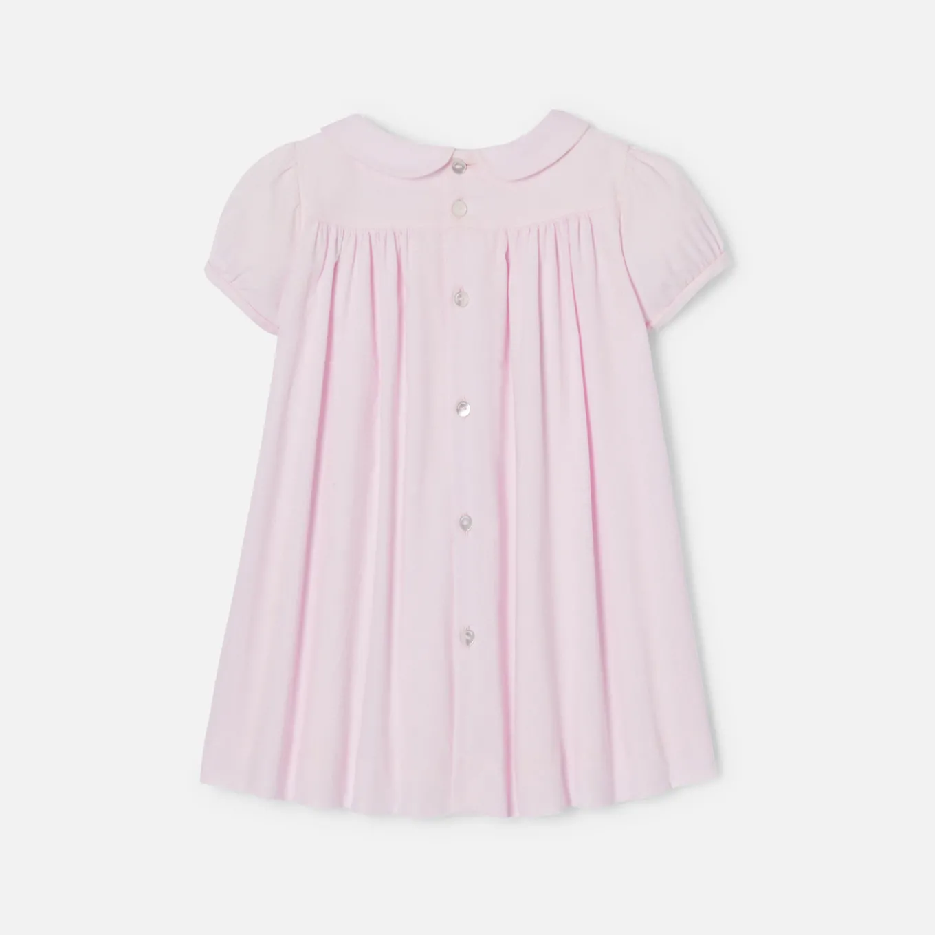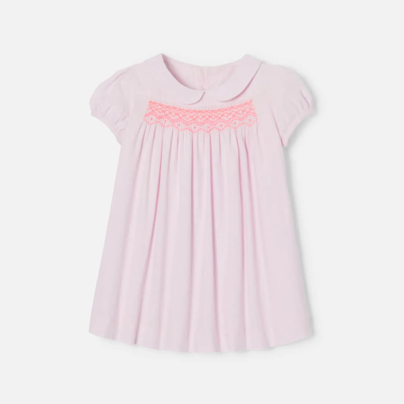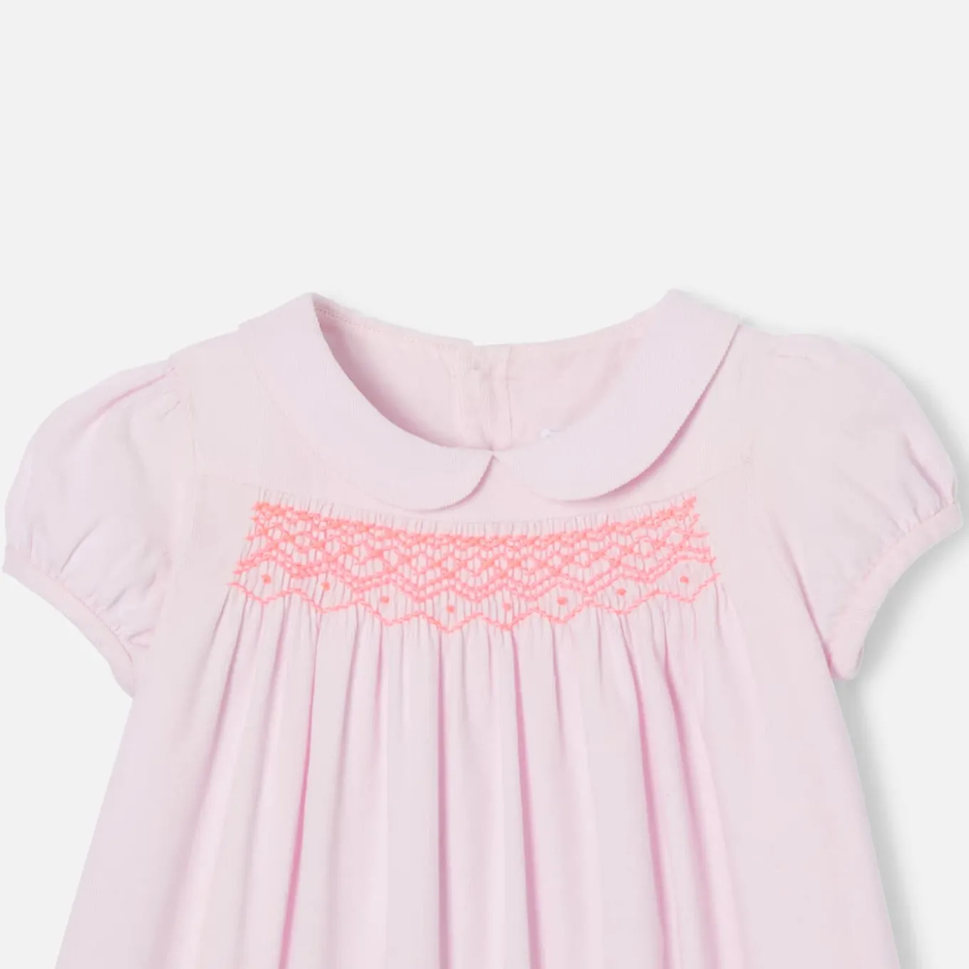 Ode moderne à l’authenticité, cette robe bébé fille dévoile tout le savoir-faire Jacadi. En velours milleraies, son plastron est sublimé de smocks faits à la main. Chic et graphique, manches ballon et col Claudine finalisent cette pièce à porter dès la fin de l’été.