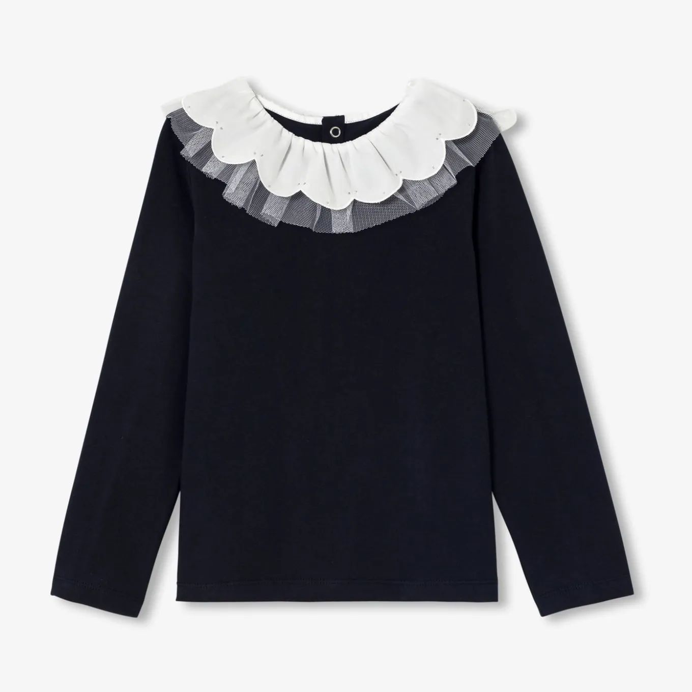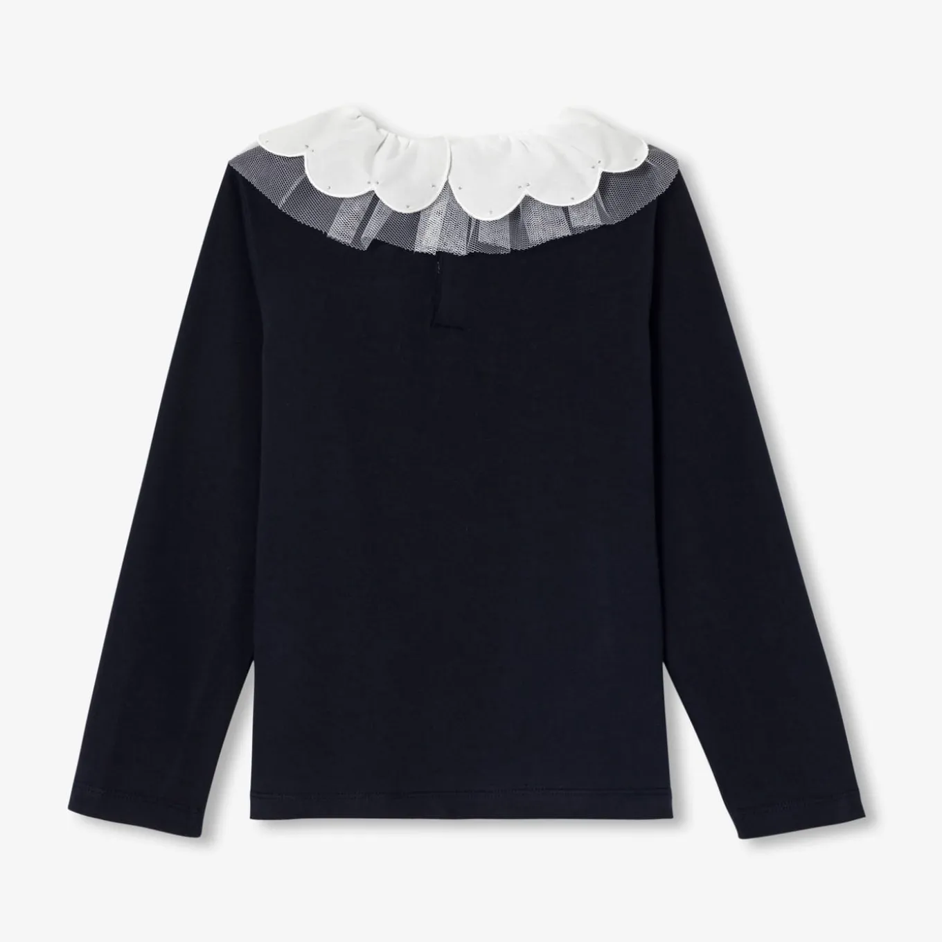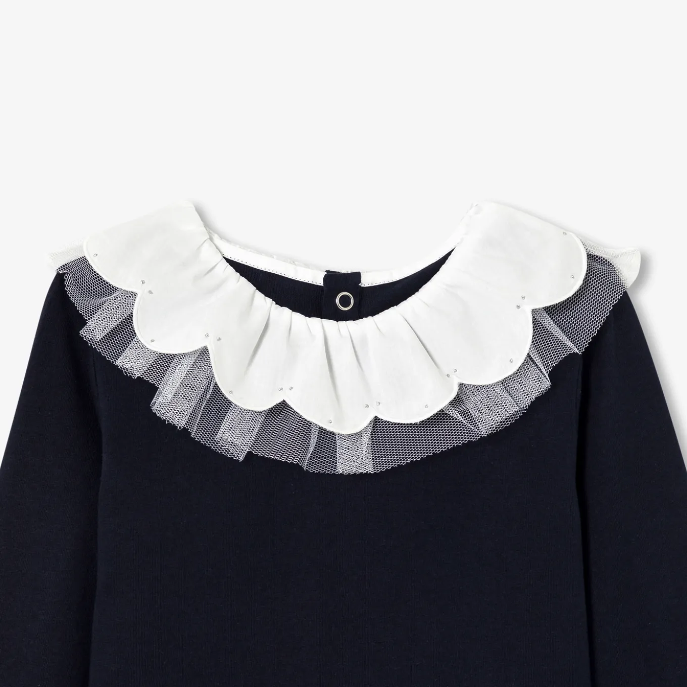 – Empiècement en tulle froncé amovible à l’encolure
